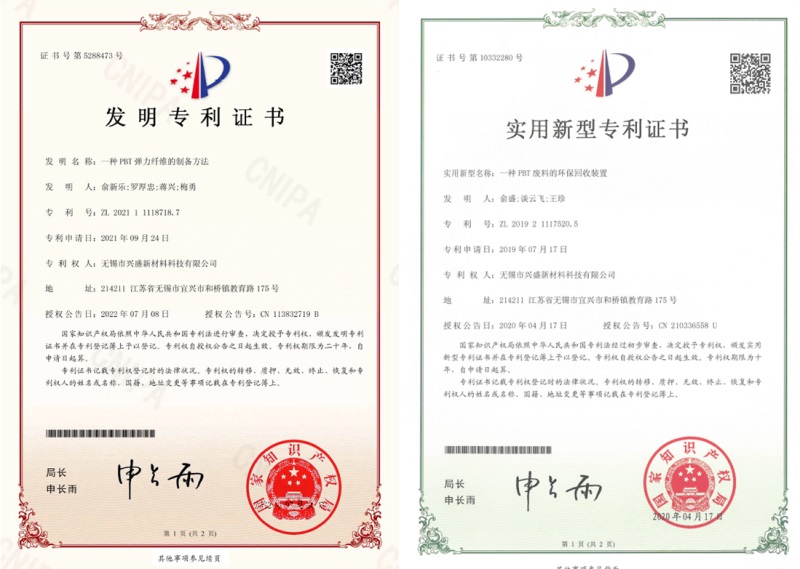 目前公司已获授权发明专利9项,实用新型专利23项,另有10多项专利正处受理当中。公司PBT熔体直纺生产专利技术于2018年获得国家发明专利并在2020年获得化纤行业协会科技进步一等奖,彻底解决了PBT纤维因为粘度高难输送不能熔体直纺的技术瓶颈。公司产品“熔体直纺原液着色PBT纤维”入选2021/2022中国纤维流行趋势代表企业及产品品牌,“高品质熔体直纺PBT聚酯纤维成套技术开发”入围2021年度第八届“中国十大纺织科技”评选前三名。公司目前正在参与国家及行业相关标准制定工作。如:纤维级聚对苯二甲酸丁二醇酯(PBT)切片、聚对苯二甲酸丁二醇酯/聚对苯二甲酸乙二醇酯(PBT/PET)复合弹力丝、聚对苯二甲酸丁二醇酯/聚对苯二甲酸乙二醇酯(PBT/PET)复合弹力丝 干热卷曲性能试验方法等行业标准制定。