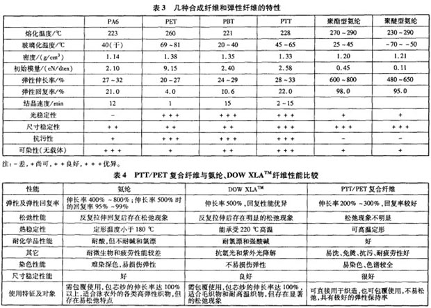 Due to the differences in chemical composition, structure, and fiber supramolecular structure of these elastic fibers, their basic properties and dyeing and finishing processing properties are different. Some of their performance comparisons are shown in Table 4. PTT/PET composite fibers are permanently crimped and elastic, allowing direct textile processing without covering. Due to its low initial modulus, soft and smooth feel, and not easy to relax, it has good chemical resistance stability. It is a polyester fiber that can be dyed with disperse dyes. It has good dyeing performance, low dyeing temperature, and is easy to get dark colors.