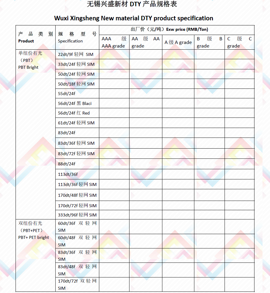 DTY product specification