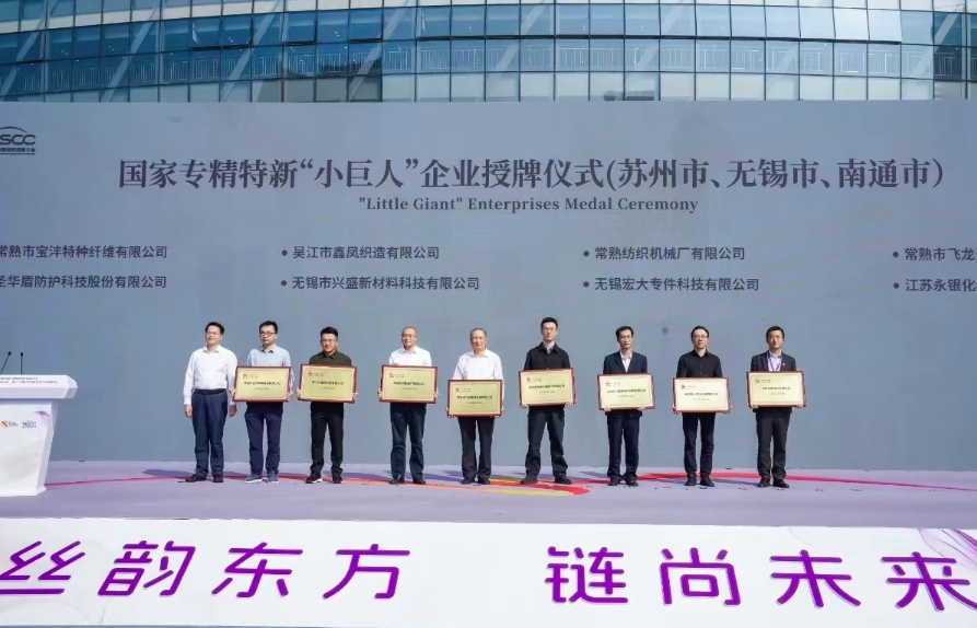 近年来,江苏省工信系统聚焦全省“1650”产业体系,深入实施专精特新企业培育三年行动计划,加快构建优质企业梯度培育体系,大力度支持专精特新企业发展,在全省高端纺织领域培育了31家国家专精特新“小巨人”企业。会上,举行了国家专精特新“小巨人”企业授牌仪式。以鼓励辖区企业更加重视人才工作、积极搭建创新平台,持续加大校企合作力度、促进科研成果转化,实现技术革新和产业升级。