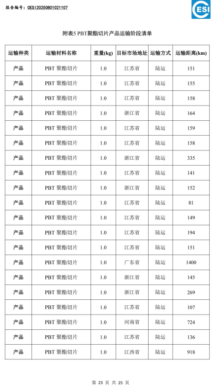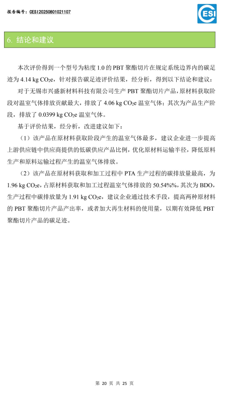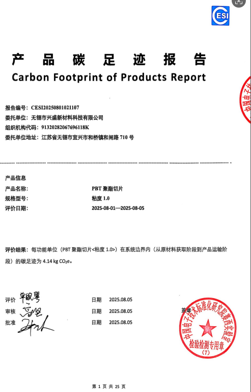 兴盛PBT产品碳足迹报告如下: