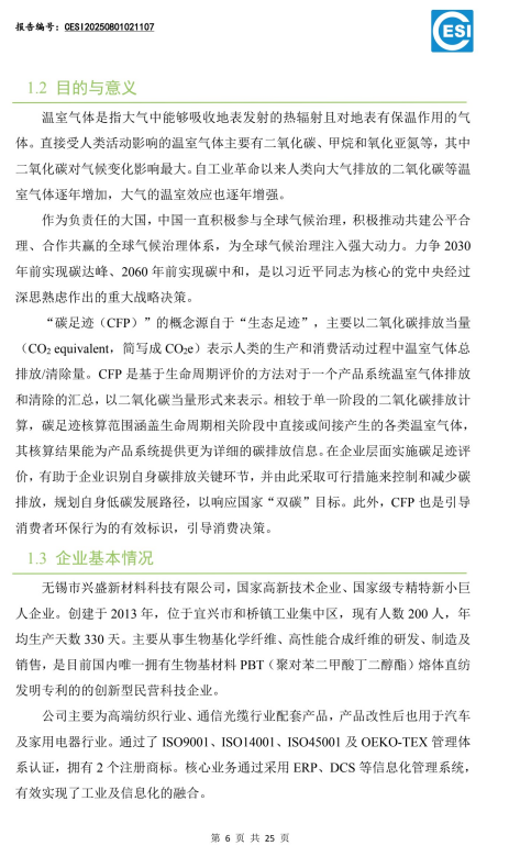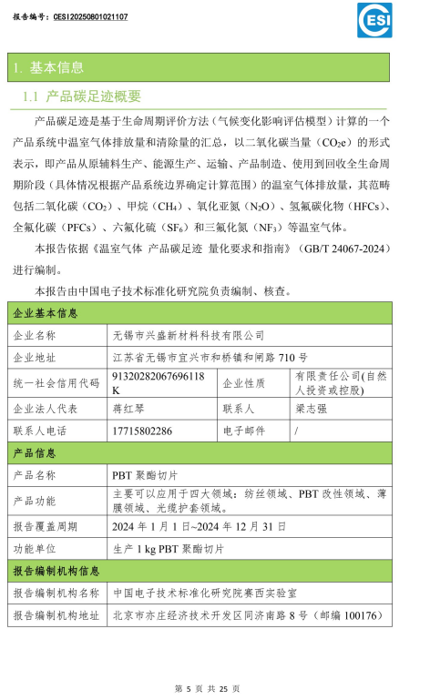 兴盛PBT产品碳足迹报告