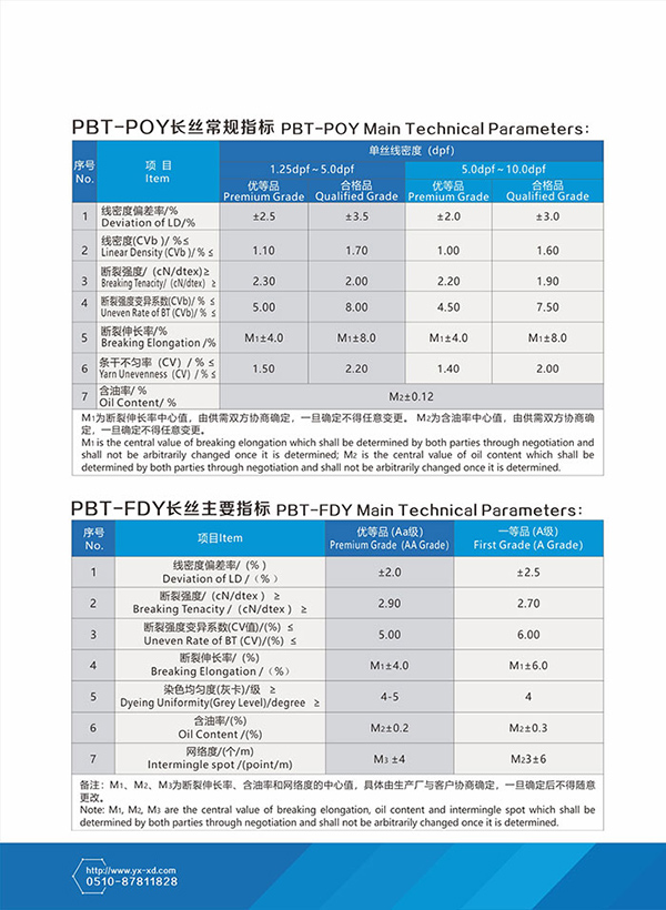 POY产品规格表