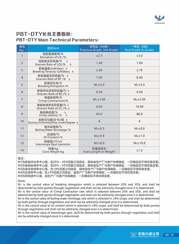 DTY产品规格表