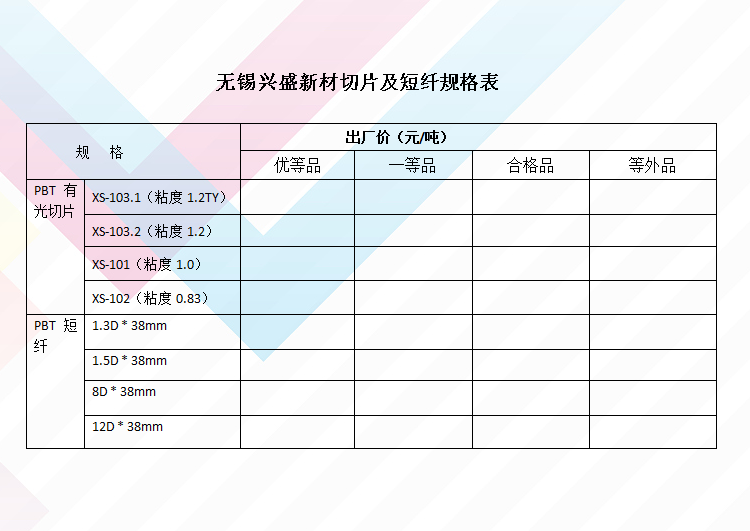 切片及短纤规格表
